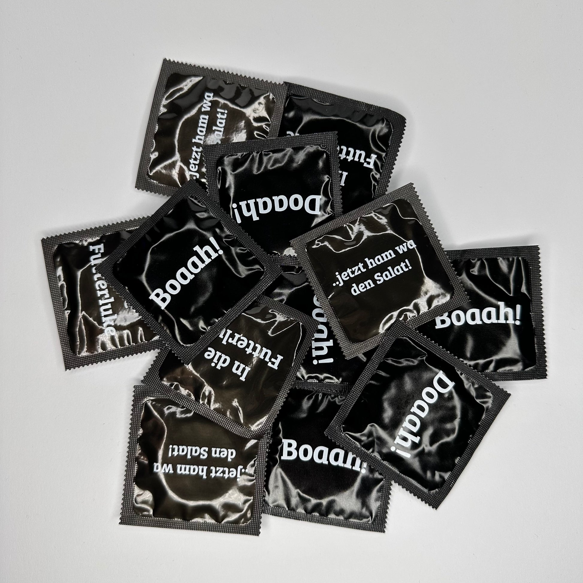 - jeweils 4x/3x "Boaah!"-Sticker/Kondome
